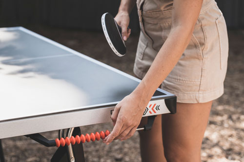 mm debelo igralno površino iz smolnatega laminata, miza za namizni tenis 500X omogoča igranje tudi najbolj zahtevnim igralcem, ki tako končno ne bodo več zapuščali igranja na zunanjih mizah.